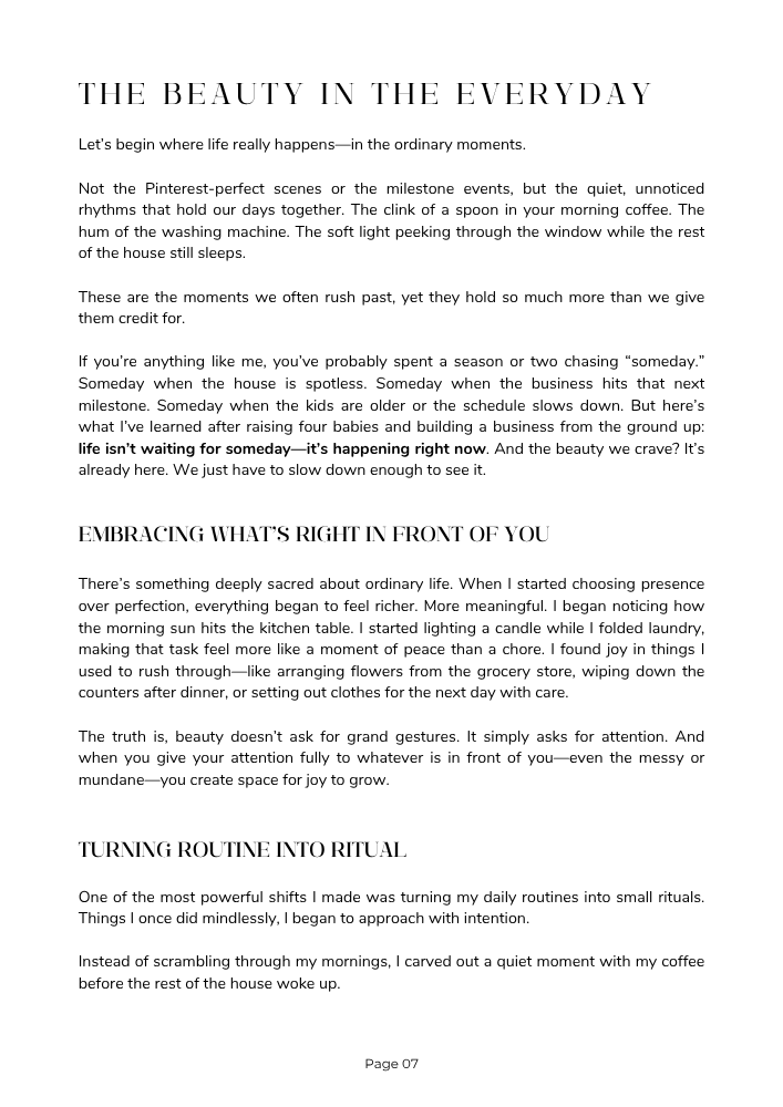 This is more than a self-help PDF. It’s a mindful living course for women who want to transform their everyday experience from chaotic to calm—without sacrificing their goals, responsibilities, or authenticity.
