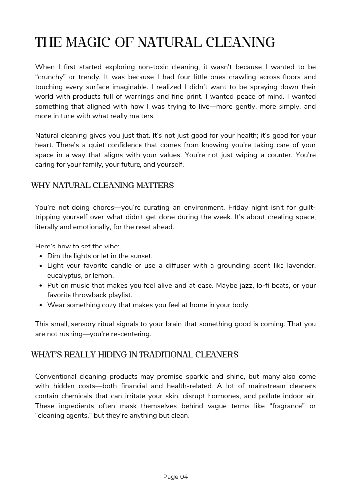Whether you’re a busy mom, a working woman craving calm, or someone just starting their homemaking journey, this guide will show you how to take control of your environment, reduce toxins, save money, and truly enjoy the process of cleaning.