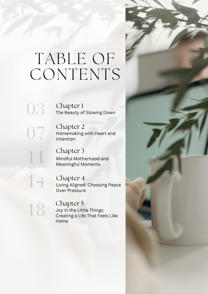 simple living guide, slow lifestyle for women, intentional homemaking ebook, mindful motherhood, peaceful routines for moms, digital download for homemakers, how to start investing with little money, homemaking with purpose, slow living inspiration, women’s self care pdf