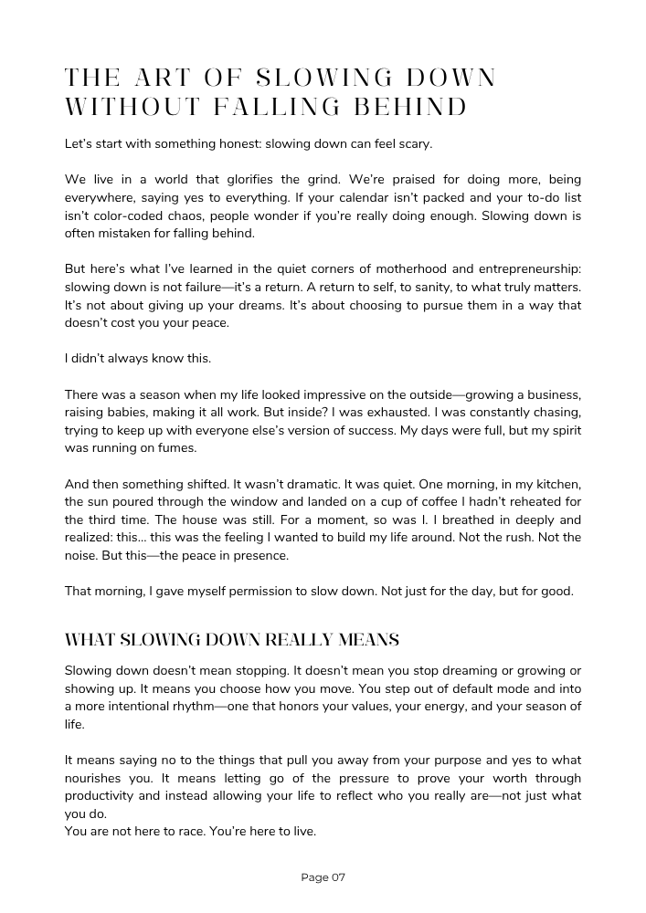 Whether you’re managing a household, raising children, or building a business, this guide is here to remind you that a rich and fulfilling life doesn’t require more noise or more productivity—it requires more alignment. More intention. More joy in the small things.
